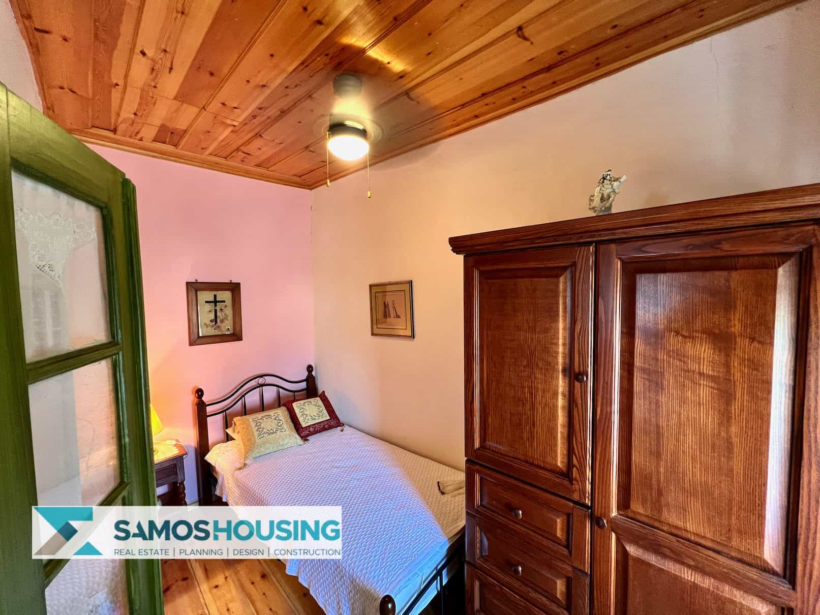 Επιπλέον, περιλαμβάνει ιδιωτικό χώρο στάθμευσης σε γειτονικό οικόπεδο—πραγματικά δυσεύρετο χαρακτηριστικό σε παραδοσιακά χωριά της Σάμου, όπως ο Μυτιληνιός, η Πυθαγόρειο ή η Μανωλάτες.