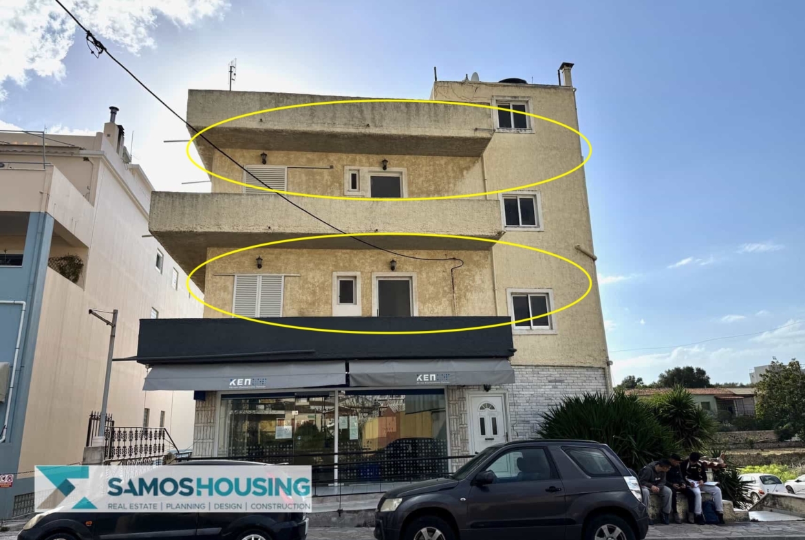SH542 Superb Apartments Samos – Ανακαλύψτε μια εξαιρετική επενδυτική ευκαιρία στην καρδιά του Καρλόβασι, Σάμος. Αυτό το όμορφο κτίριο διαθέτει δύο ολόκληρους ορόφους προς πώληση, ο καθένας με τρία ευρύχωρα διαμερίσματα.