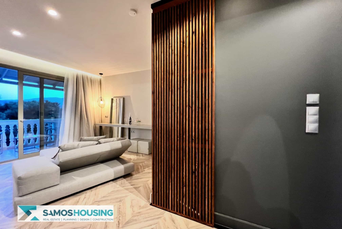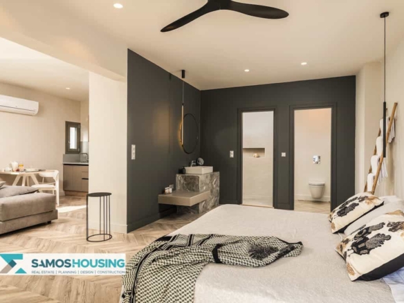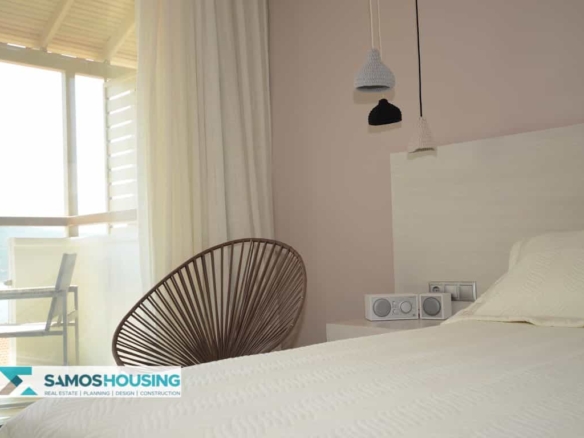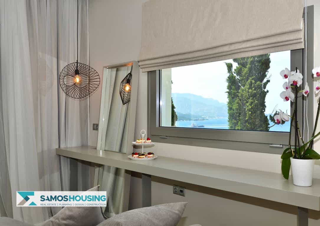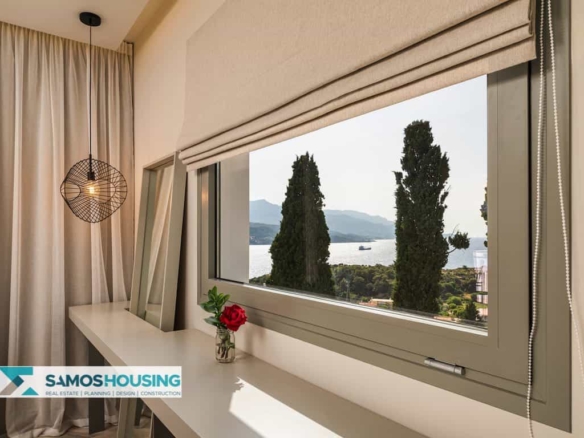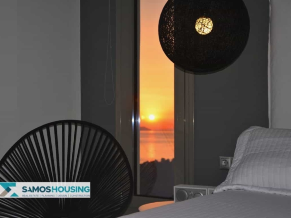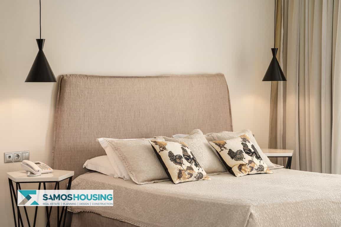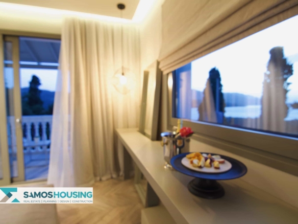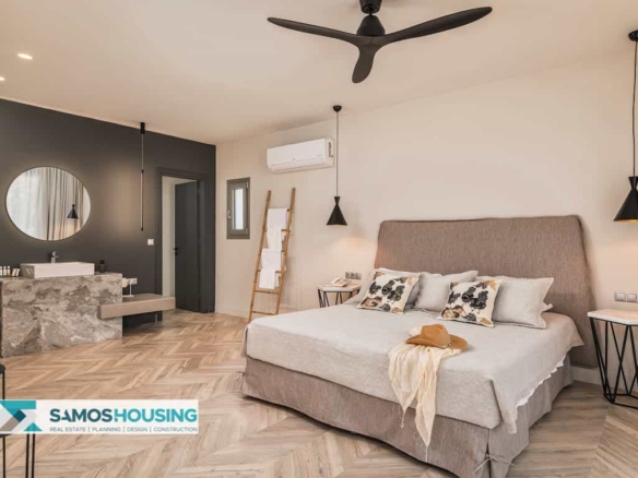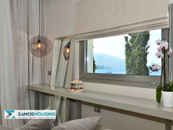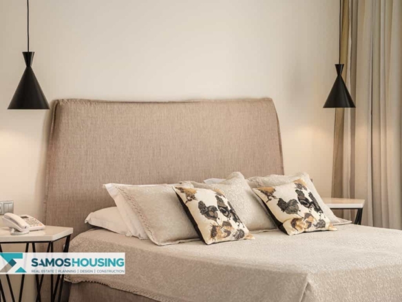 Set in the chic Kalami area, the property enjoys both serenity and accessibility. Kalami itself is only minutes from Samos Town and the bustling port. Gangou Beach is a short, two-minute walk from the hotel’s door. Restaurants, bars, shops, and all the town’s venues are close, yet privacy and tranquility rule the surroundings. This is a central advantage for guests and investors seeking Samos Real Estate.