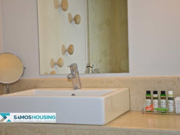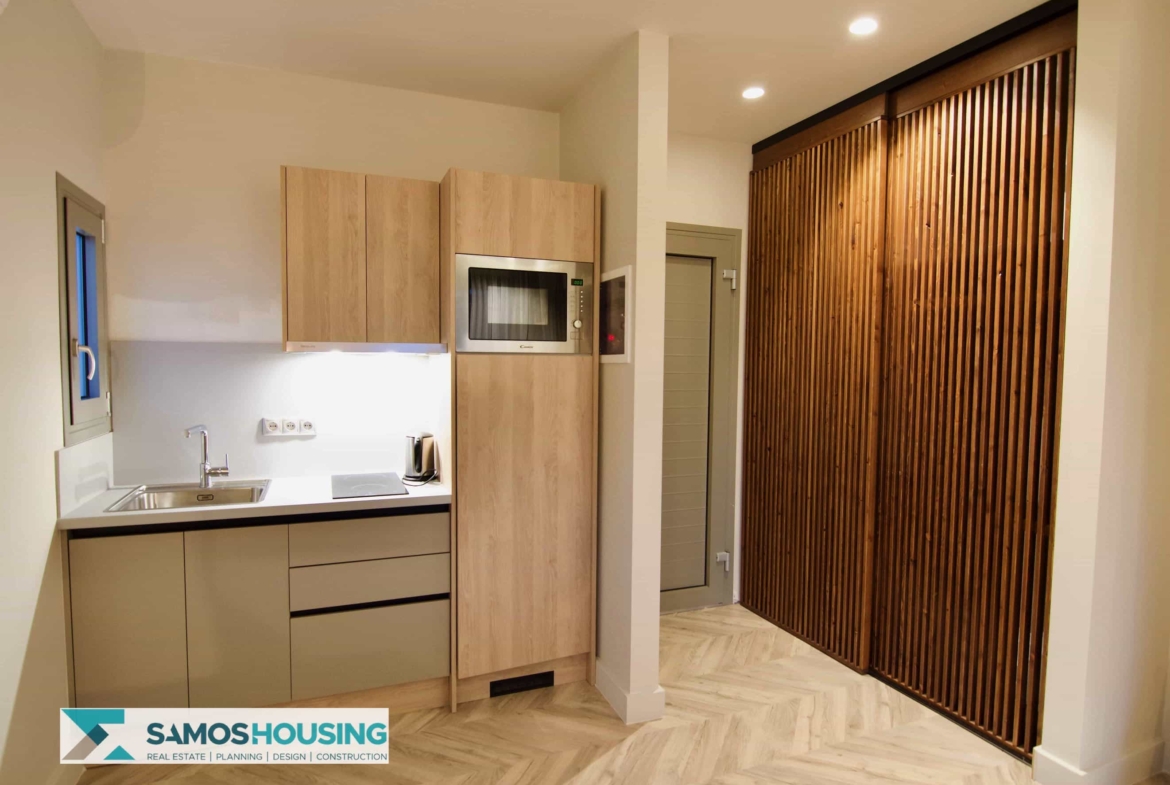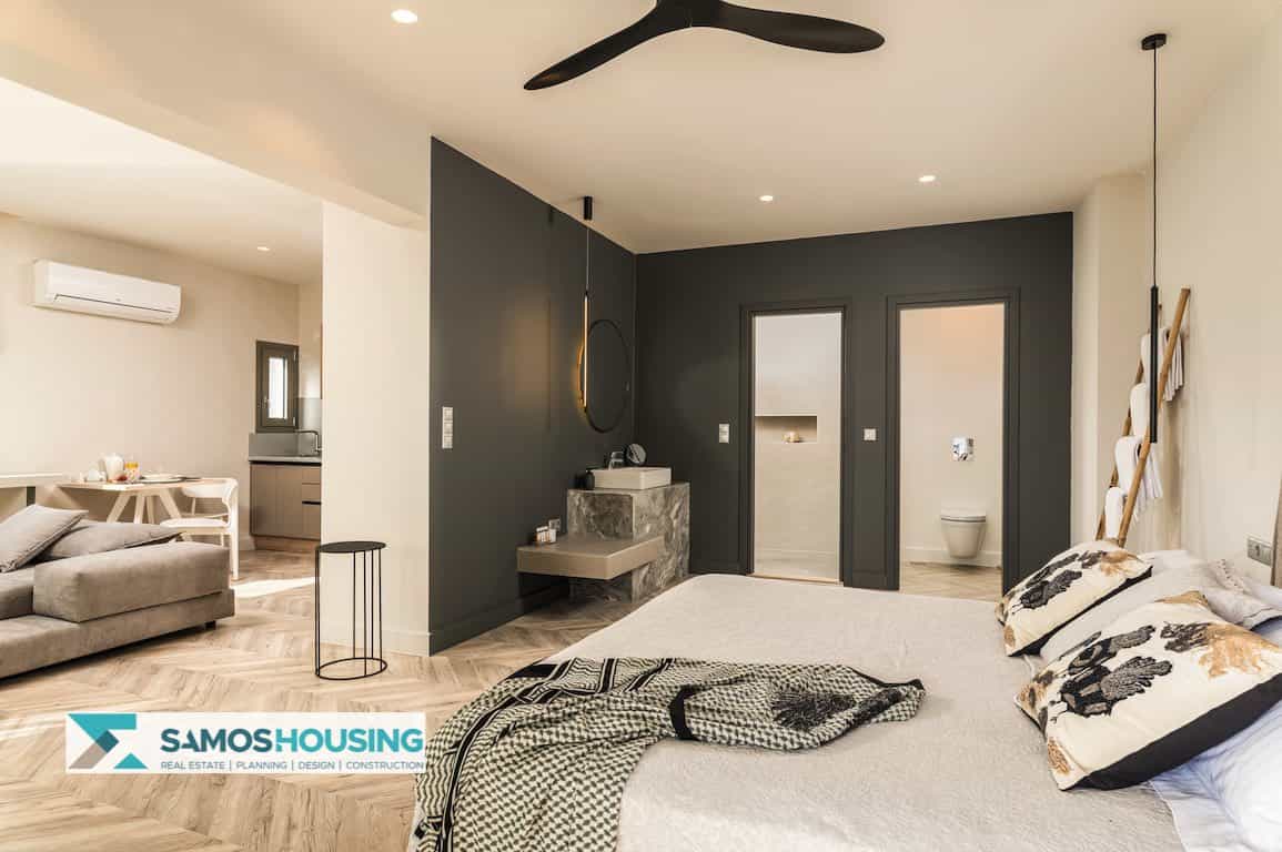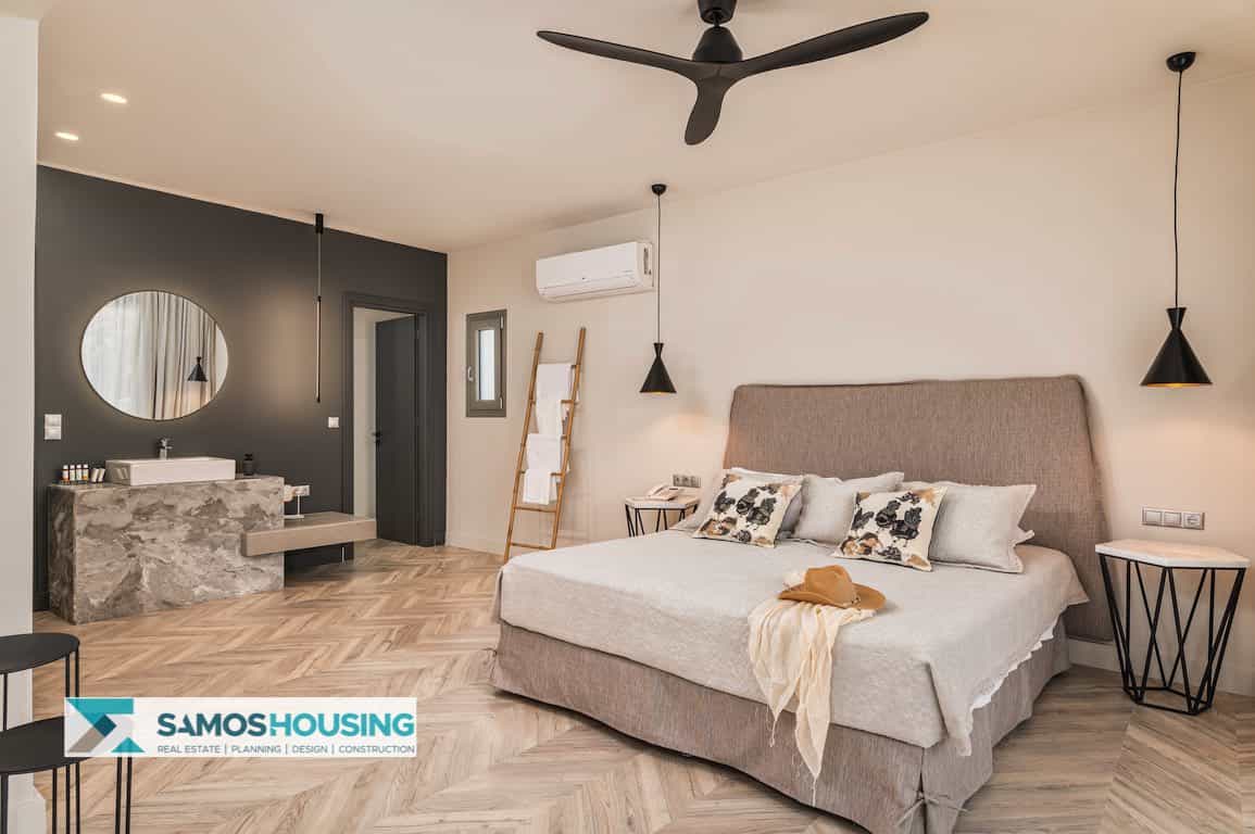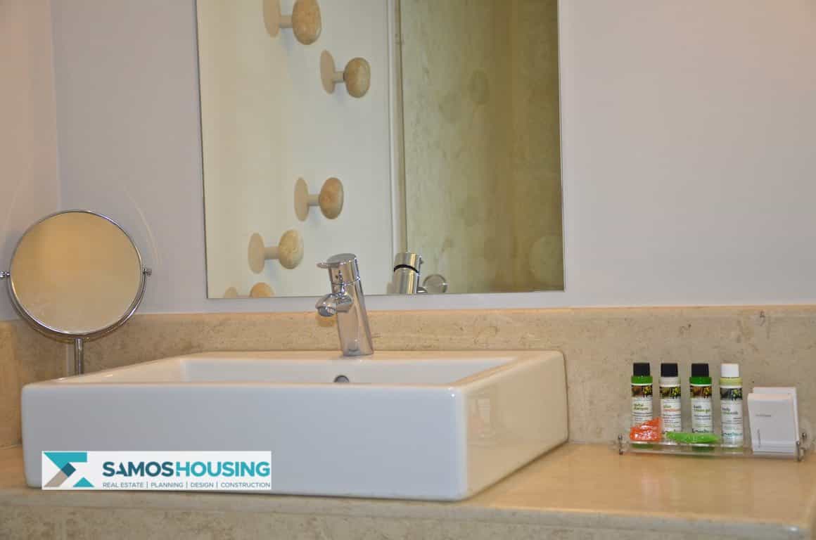 Set in the chic Kalami area, the property enjoys both serenity and accessibility. Kalami itself is only minutes from Samos Town and the bustling port. Gangou Beach is a short, two-minute walk from the hotel’s door. Restaurants, bars, shops, and all the town’s venues are close, yet privacy and tranquility rule the surroundings. This is a central advantage for guests and investors seeking Samos Real Estate.