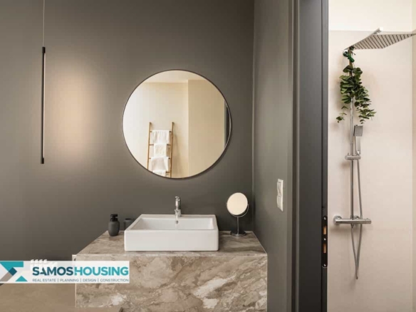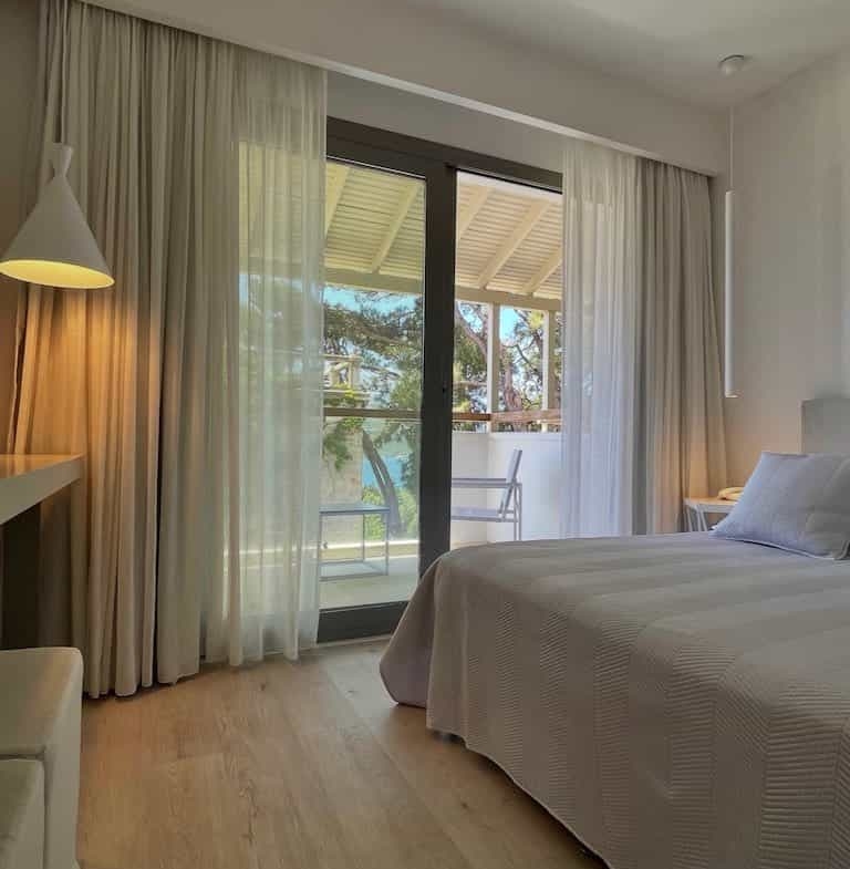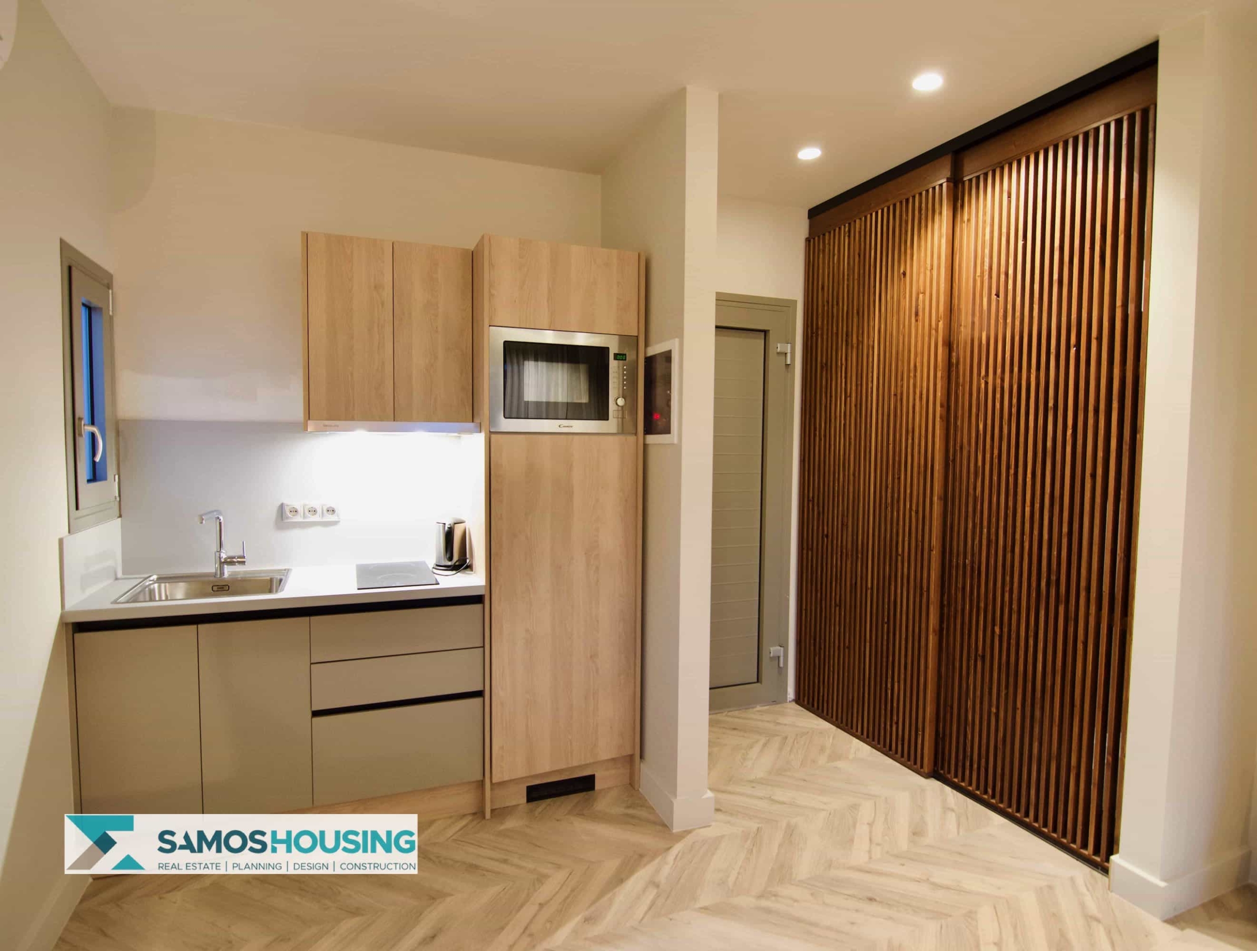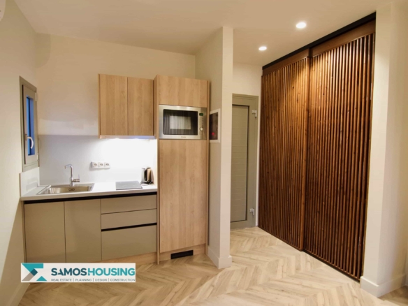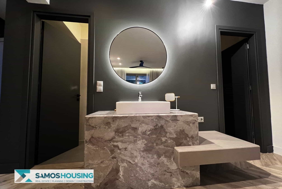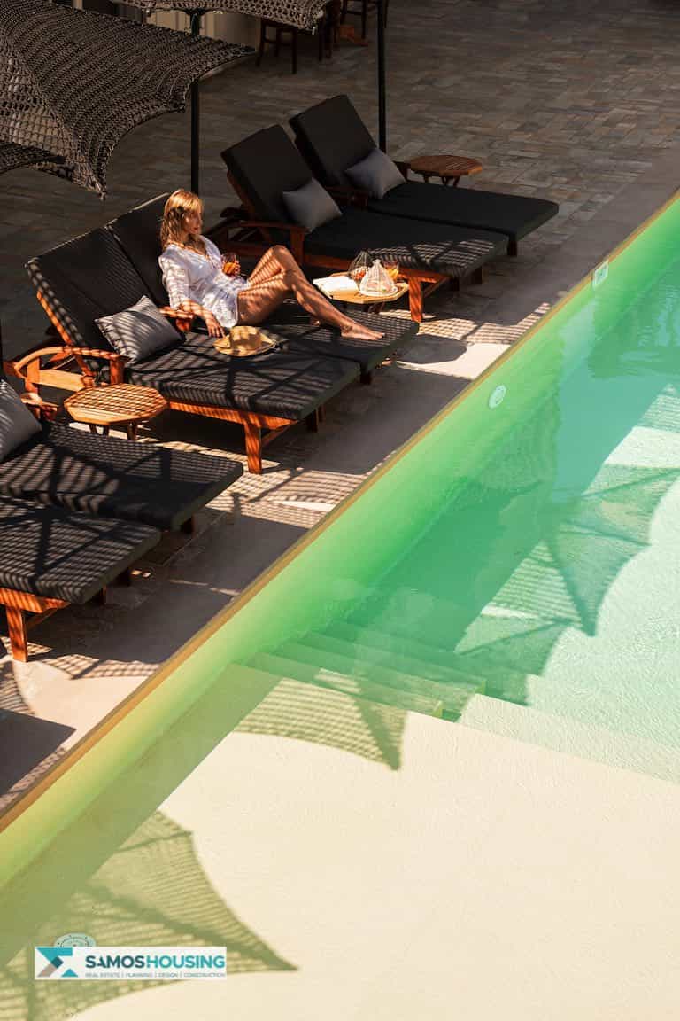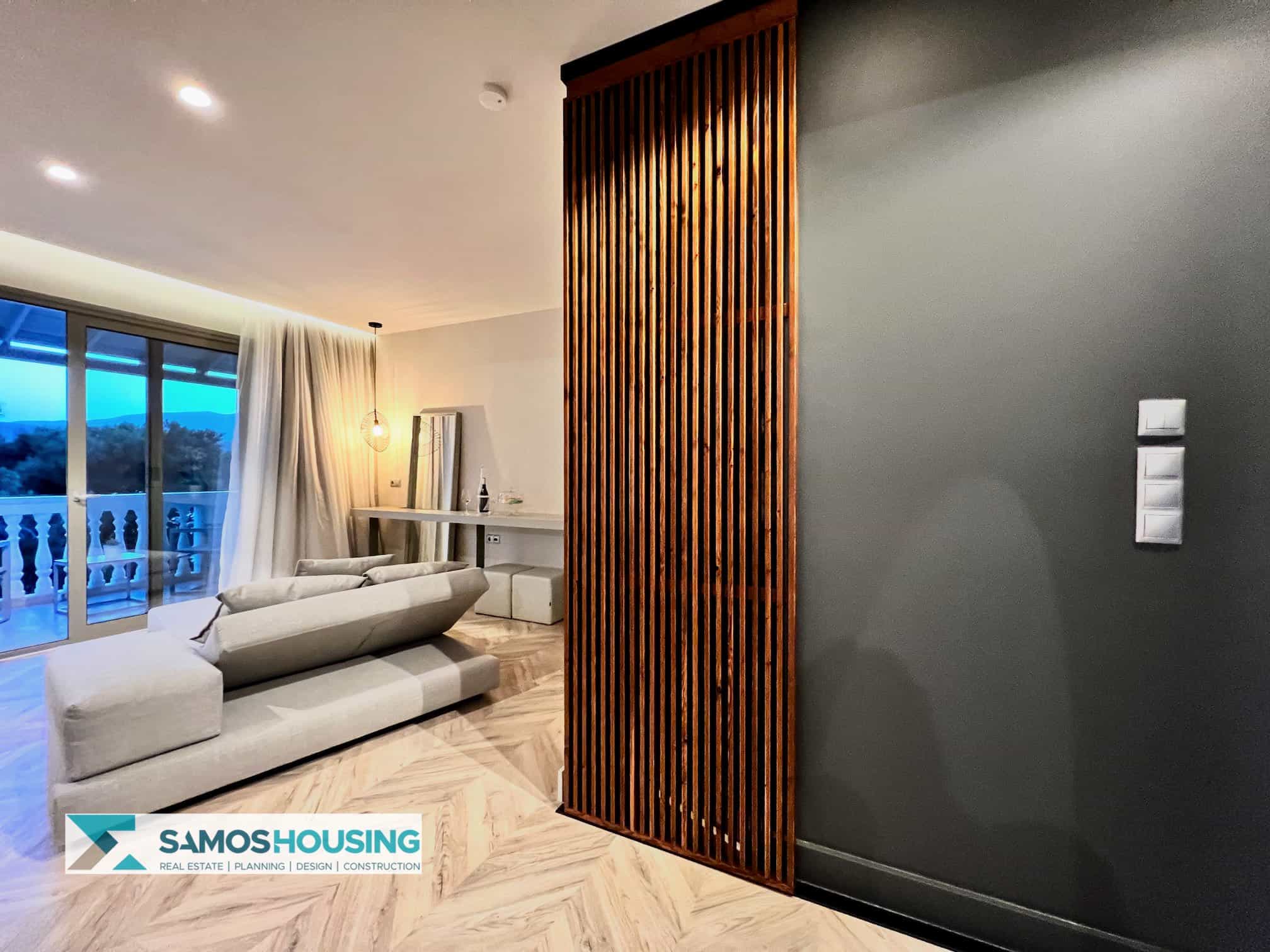 Set in the chic Kalami area, the property enjoys both serenity and accessibility. Kalami itself is only minutes from Samos Town and the bustling port. Gangou Beach is a short, two-minute walk from the hotel’s door. Restaurants, bars, shops, and all the town’s venues are close, yet privacy and tranquility rule the surroundings. This is a central advantage for guests and investors seeking Samos Real Estate.