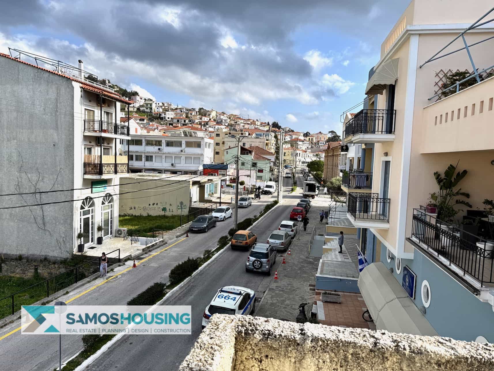 Because the building sits next to the town’s main commercial artery, visibility and accessibility are unmatched. This is especially important for investors who want to maximize occupancy and rental returns in the Samos Houses market.